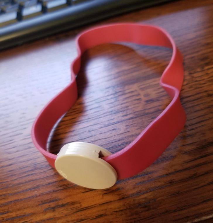 13. “Kami punya beberapa benda seperti ini di rumah dan tidak tahu apa itu. Mungkin gelang karet dengan iklan di belakang benda putih itu?”